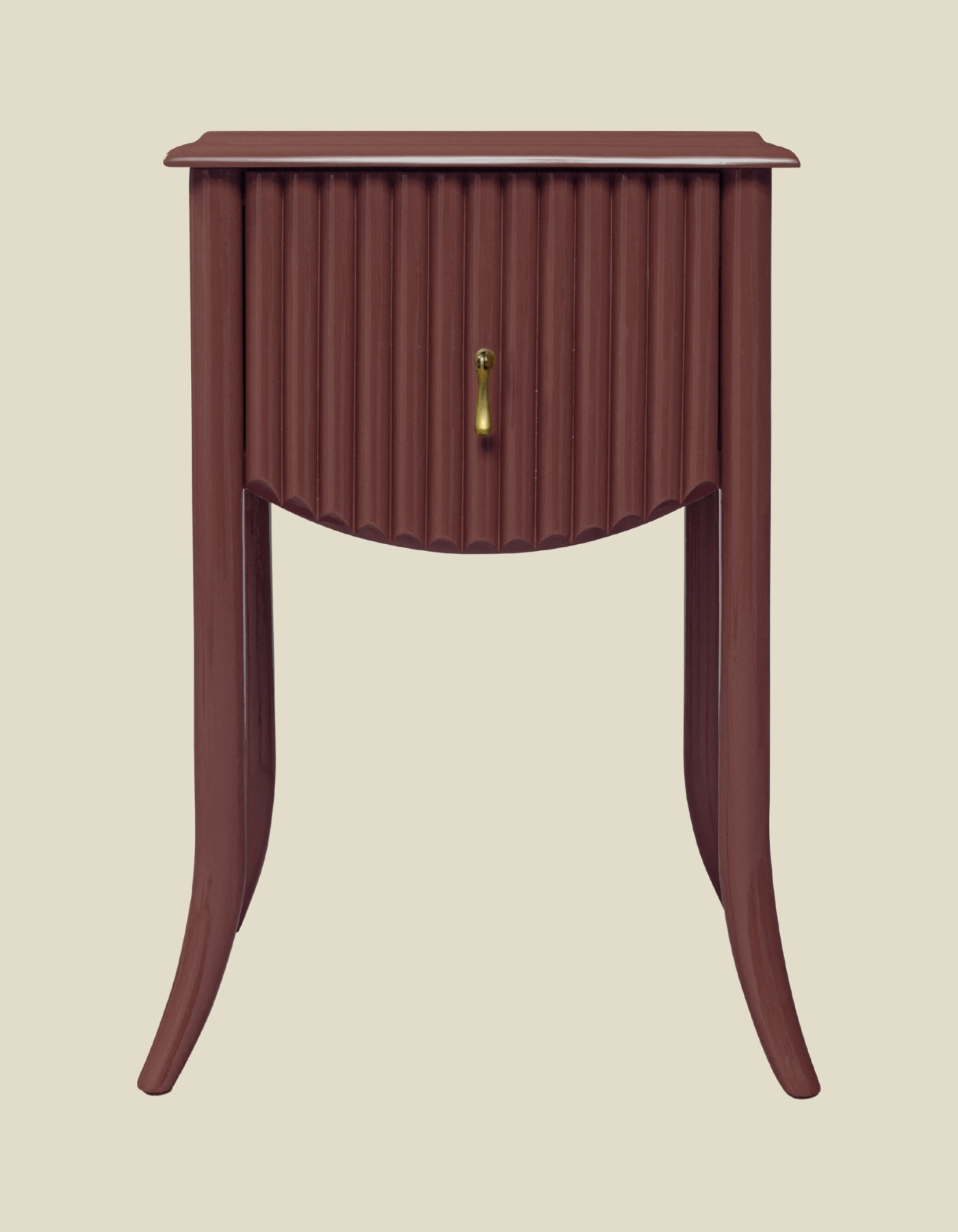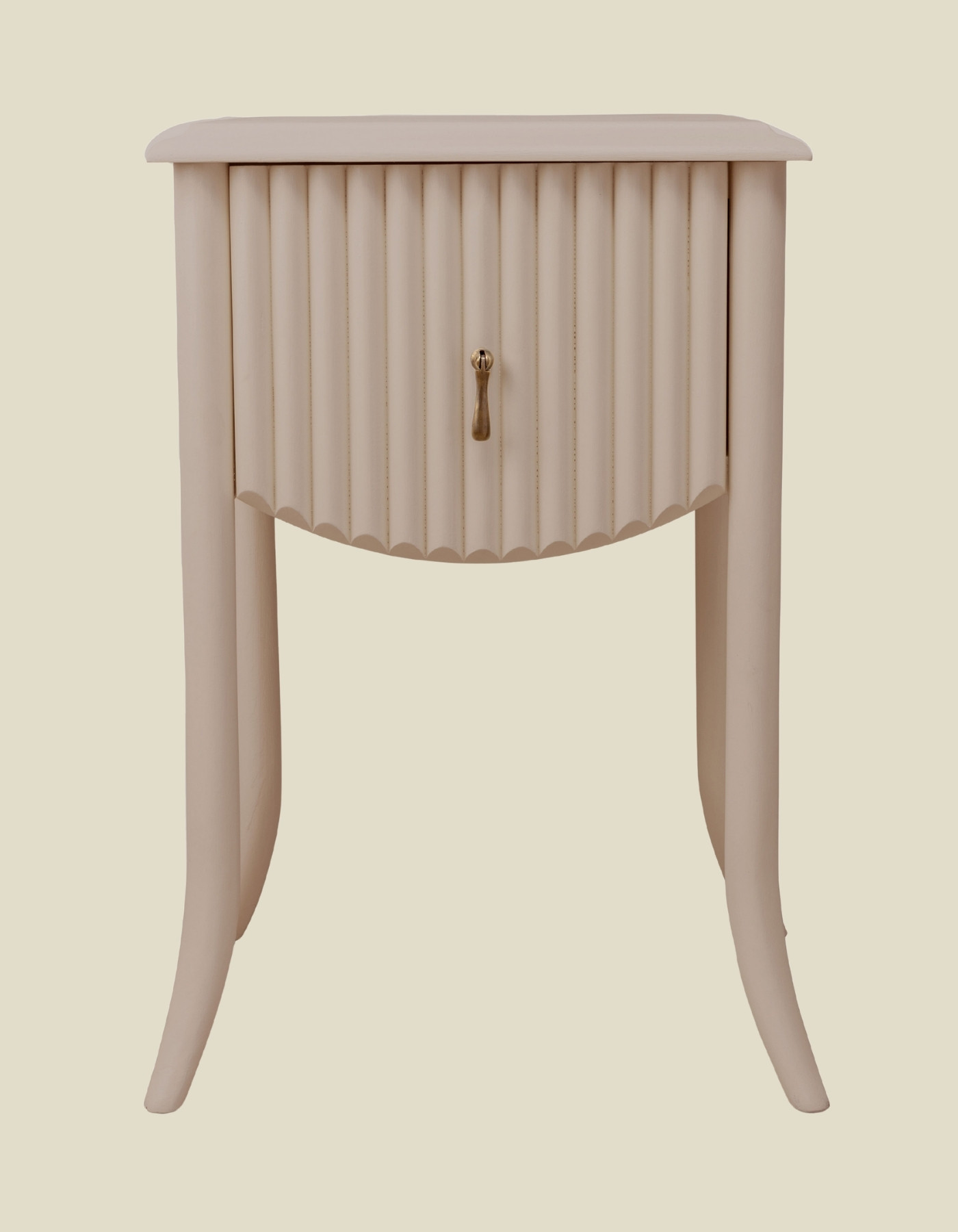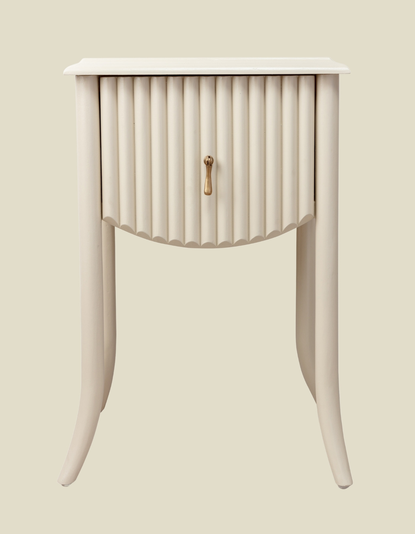 A small but perfectly formed, fluted, bamboo style bedside table with a single drawer.
