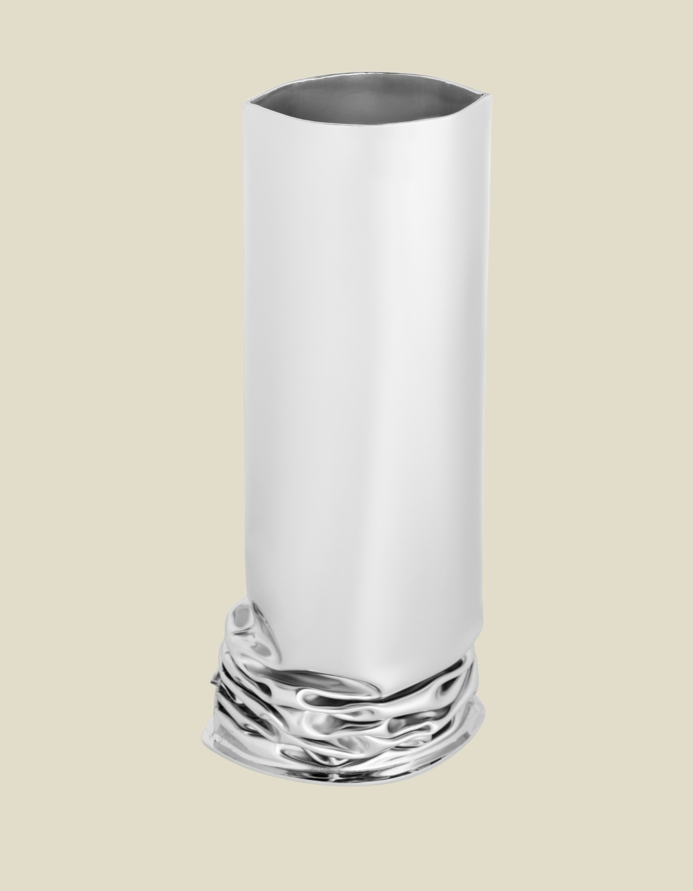 Crash Vases by Zieta reflect the “controlled loss of control” technique. The vases embrace the notion of deformation. Grouped together, they open a narrative of simplicity, supported by irregular foundations displaying the vividness of steel.