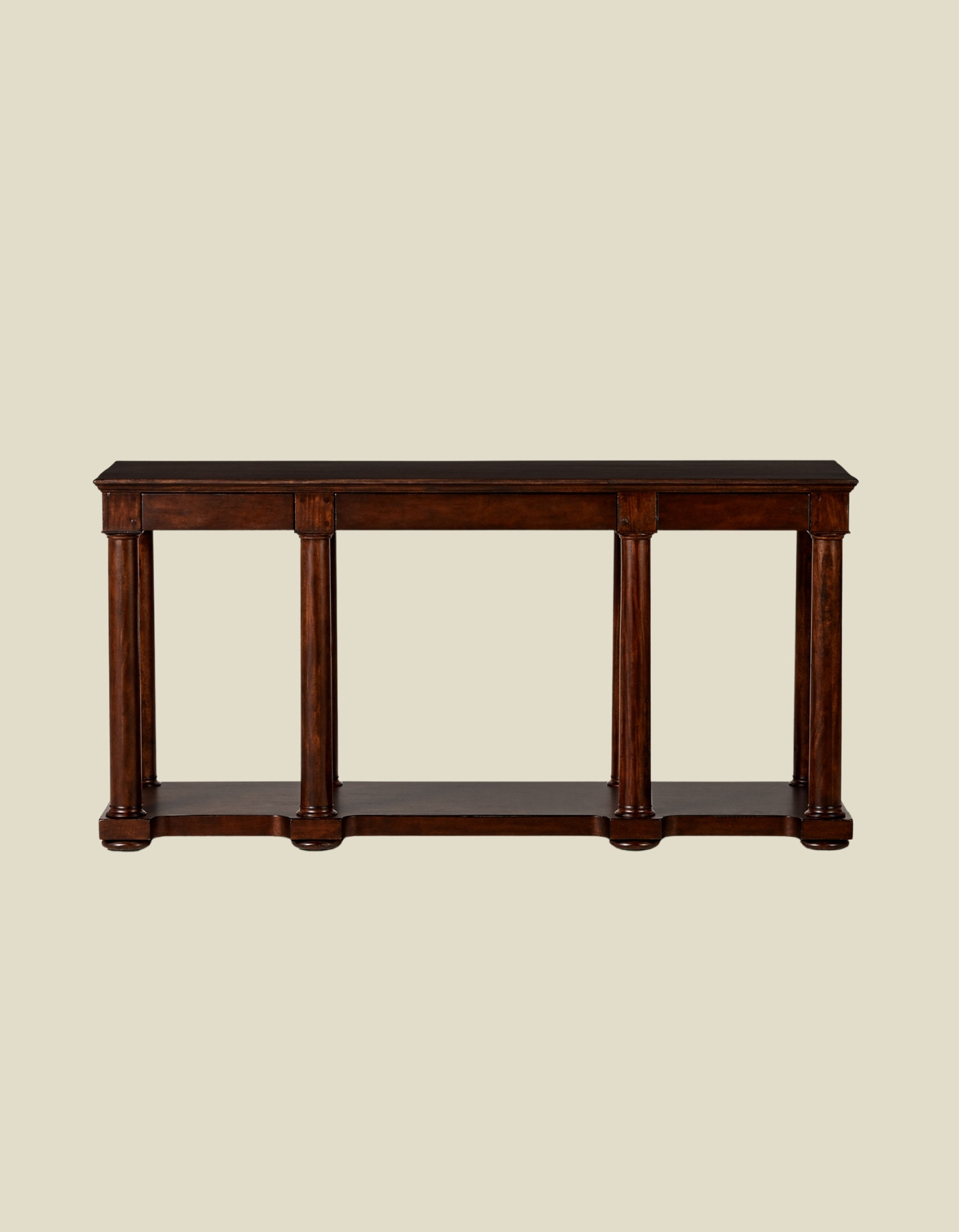 Subtle yet elegant, Ralph Lauren’s Dalehurst Large Pillar Console Table is crafted from solid wood with fine crown veneers. It features hand-carved pillar supports and three drawers with deftly concealed hardware.