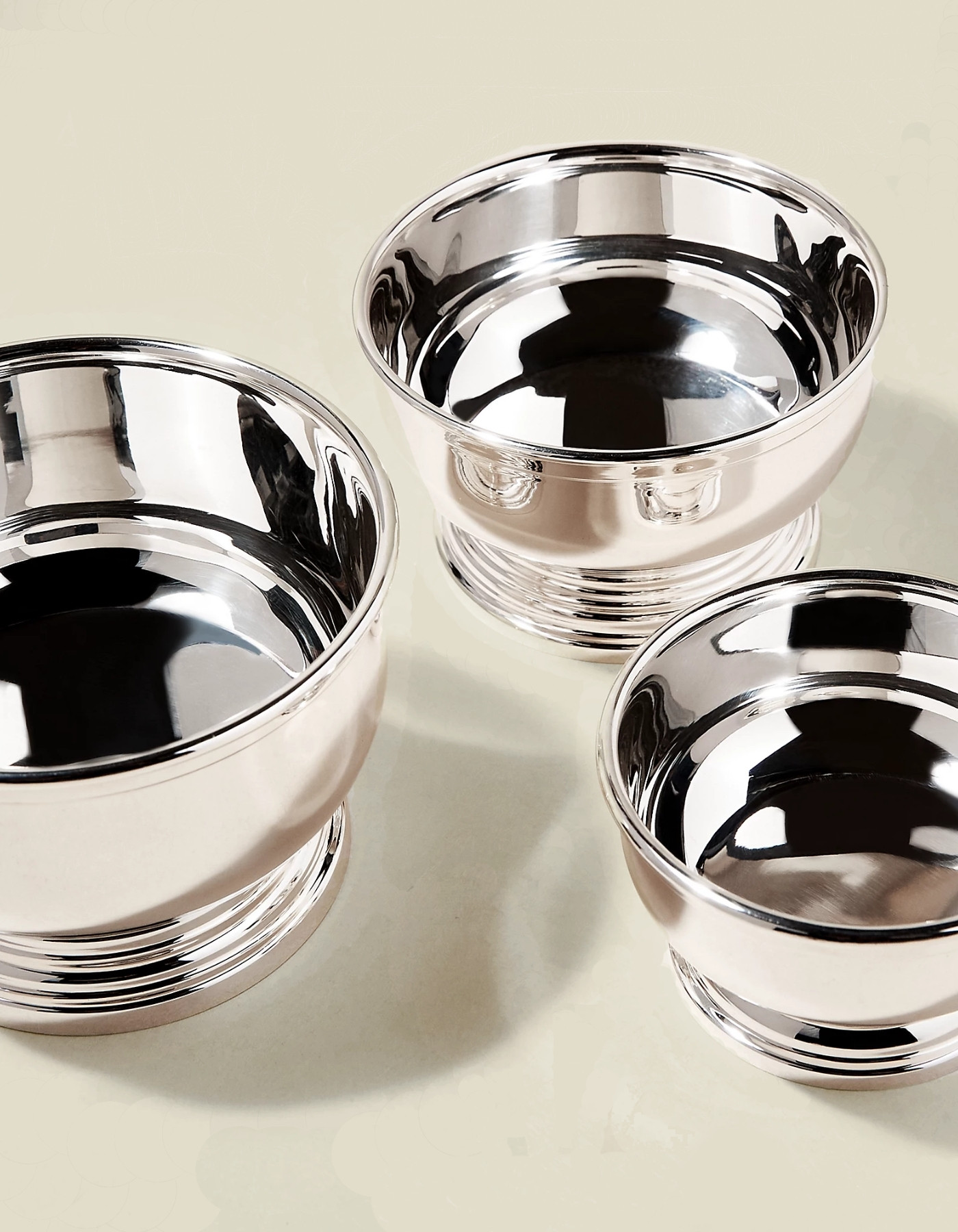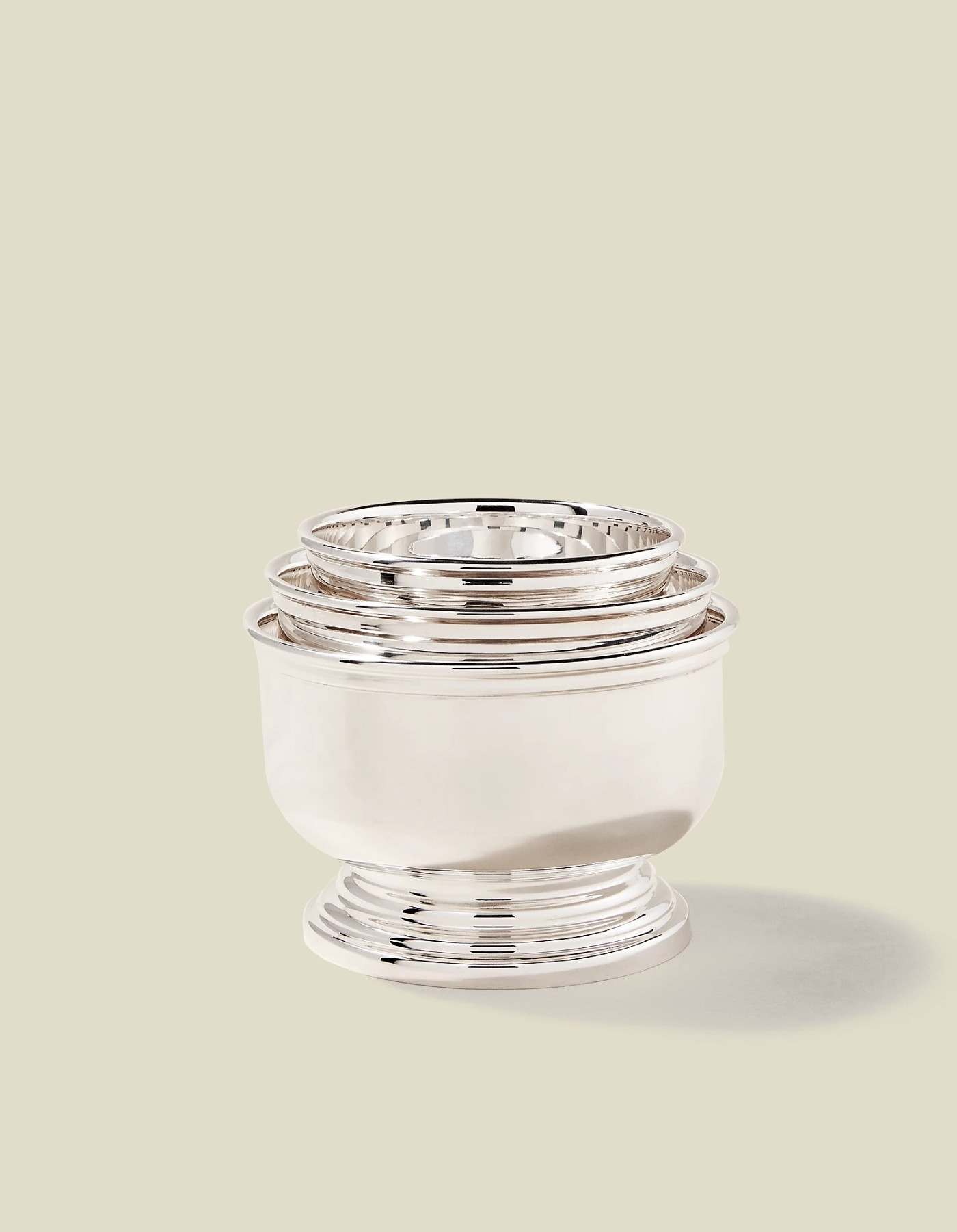 Crafted from silver-plated brass and presented in a stackable set of three, the Ellery Nut Bowl draws inspiration from classic English barware.