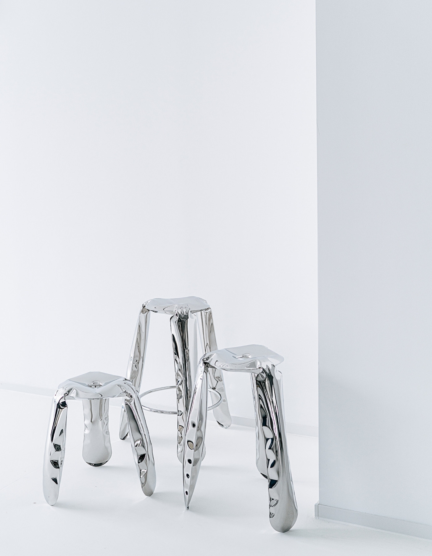 The Plopp Stool is an original, iconic object and a flagship of Zieta Studio. It is a symbol of multi-award wining designer and artists Oskar Zięta’s research into the properties and possibilities of metal.