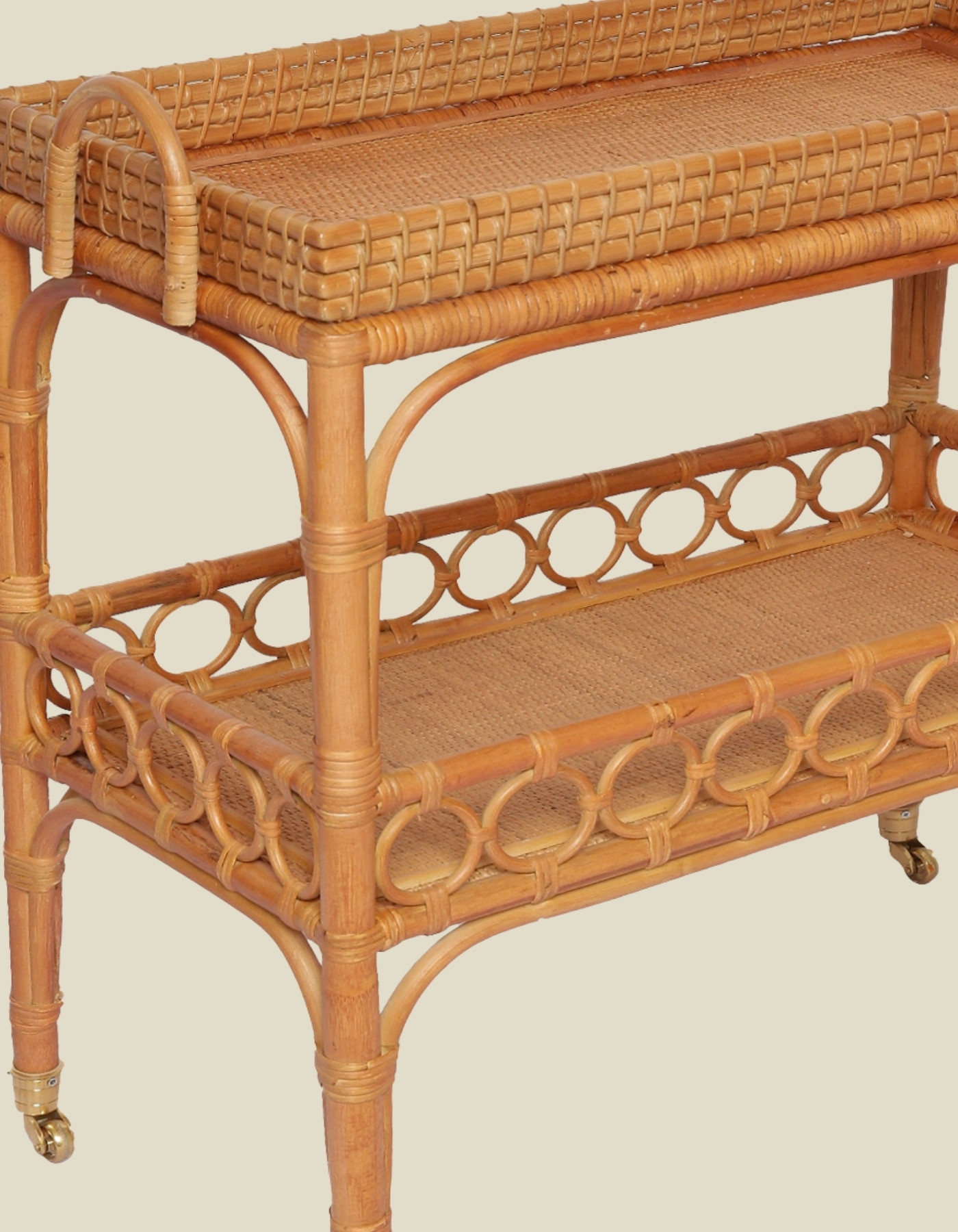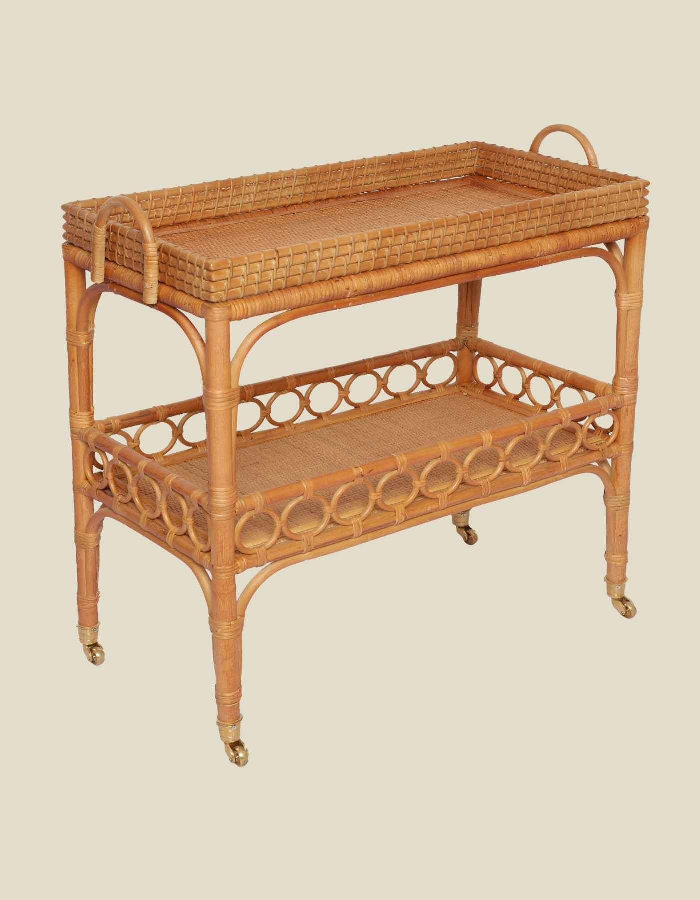 A nod to the golden age of cocktail soirées, the Raffles Bar Trolley by Charles Orchard is a rolling invitation to effortless elegance. With its natural rattan, leather bindings and brass castors, it whispers of moonlit mixing of your favourite spirits. Whether laden with vintage decanters or a curated collection of aperitifs, this trolley turns the art of entertaining into a performance of style and charm.