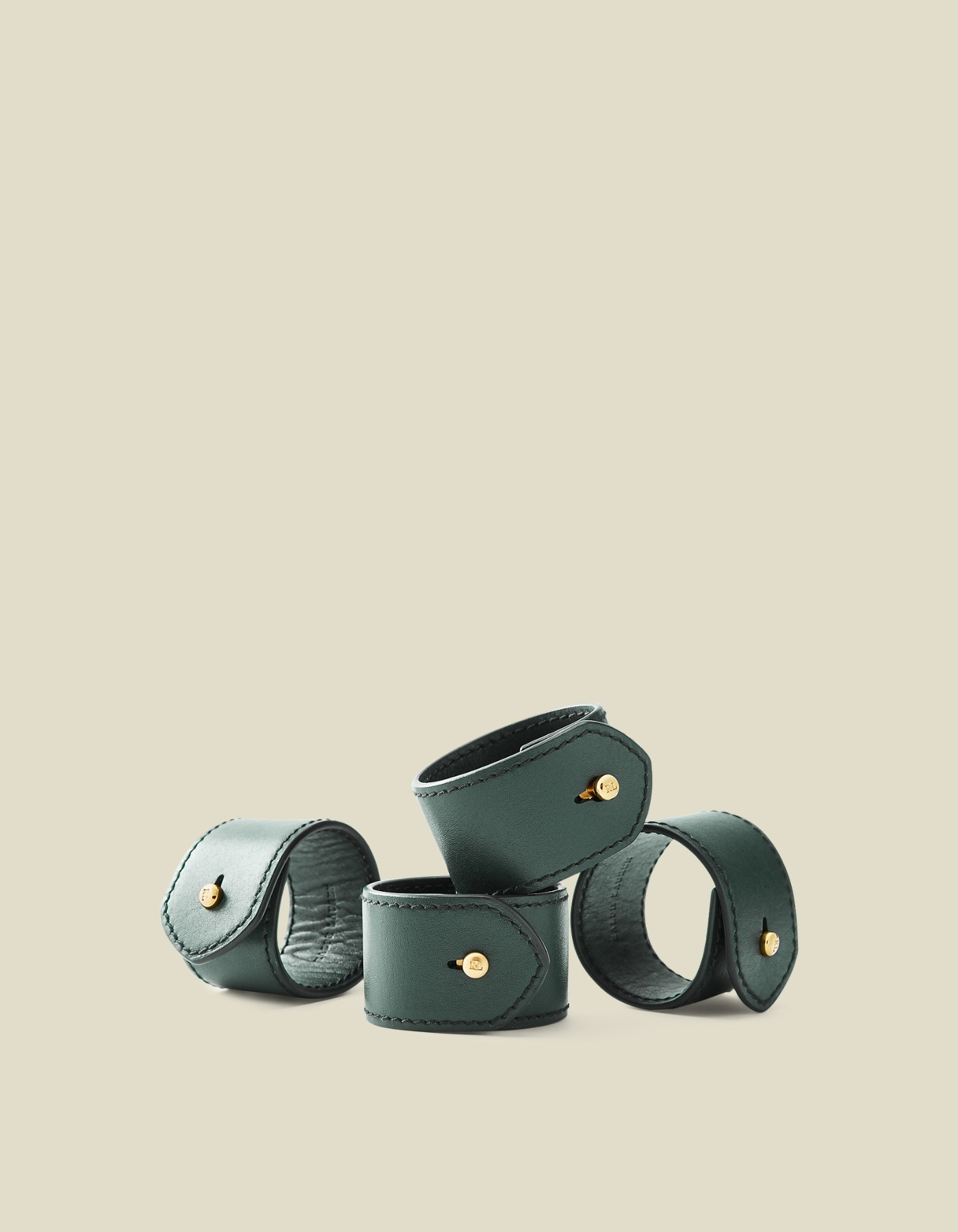 Part of the Ralph Lauren Home Wyatt collection, these supple leather napkin rings are delicately stitched by hand and finished with signature RL-engraved metal rivets.